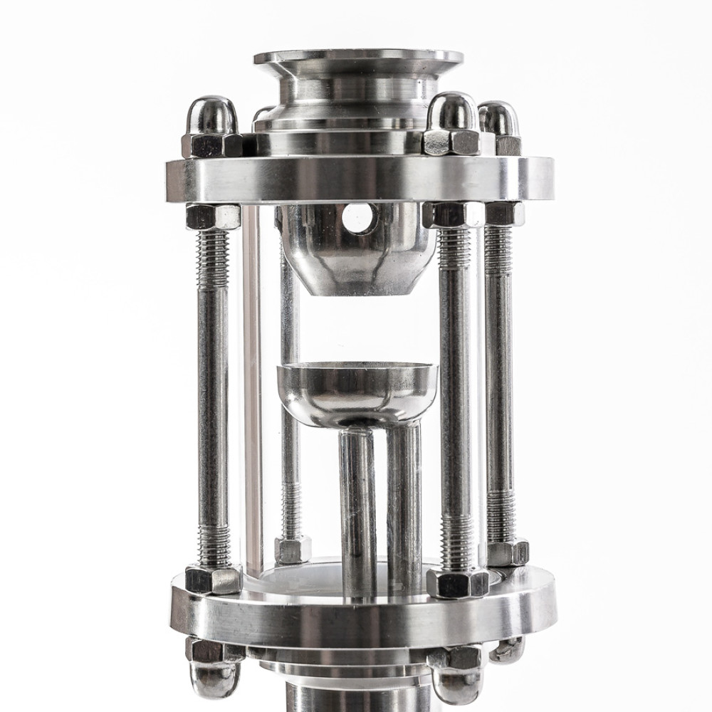 A diopter for KLAMP 1.5 inches with a built-in sampling unit is designed for sampling reflux at different sections of the column, mainly for sampling the head fraction and simultaneous visual control of the reflux outflow.